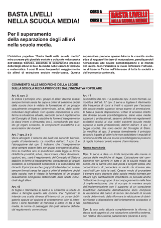 La scuola pubblica non deve alimentare un sistema selettivo, quello dei livelli A e B. Delimitare precocemente una cerchia di persone ritenute capaci e meritevoli e lasciarne indietro altre in un momento della vita in cui tutto è ancora in gioco è una lacuna nel sistema formativo che questa iniziativa popolare vuole colmare. Formare bene e formare tutti è un obiettivo che la nostra scuola pubblica può raggiungere perché i mezzi per farlo ci sono!